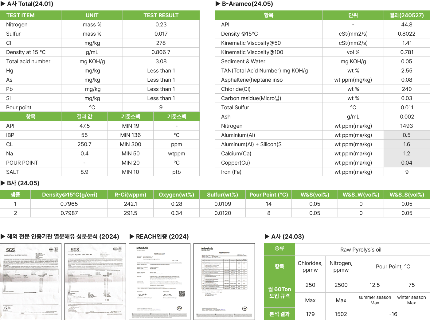 ◈ EcoTechnology Sample Test Report by Major Domestic & International Refineries/Petrochemicals